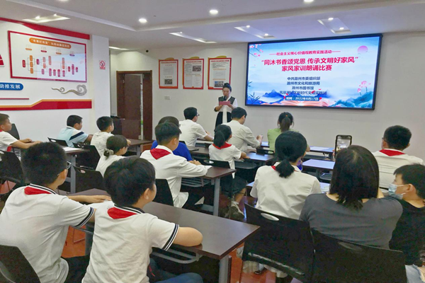 家庭是社会的细胞,家风,影响着一个人的品质和行为。树立良好家风,培育和弘扬社会主义核心价值观,是新时代文明实践活动的重要内容。2022年8月17日,凤凰湖社区联合社区大党委成员单位中共滁州市委组织部,偕同滁州市文化旅游局、滁州市图书馆开展“同沐书香颂党恩 传承文明好家风”家风家训朗诵比赛活动。