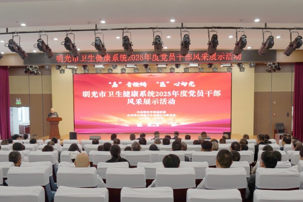 为推动党建与业务工作深度融合,进一步展示明光市卫生健康系统党员干部的精神风貌,11月14日,明光市委组织部、明光市委卫健工委联合举办明光市卫生健康系统2025年度党员干部风采展示活动。活动围绕“看”“学”“听”“评”四个环节,聚焦行业系统党建特色,搭建交流平台,明光市委组织部分管负责同志,明光市委卫健工委主要负责同志,卫健系统各党支部书记、部分党员代表参加活动。